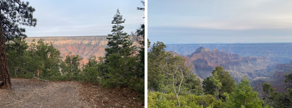 At the last minute I was able to get Eric to be my shuttle river, and we were off.  After a full day of driving and a side trip to Horseshoe Bend, we made it to the North Kaibab Trailhead.  We did a little exploring, ate dinner (Subway) and met some of the other hikers in the lot.  In my opinion, the views from the North Rim aren’t as good as the views from the South Rim.