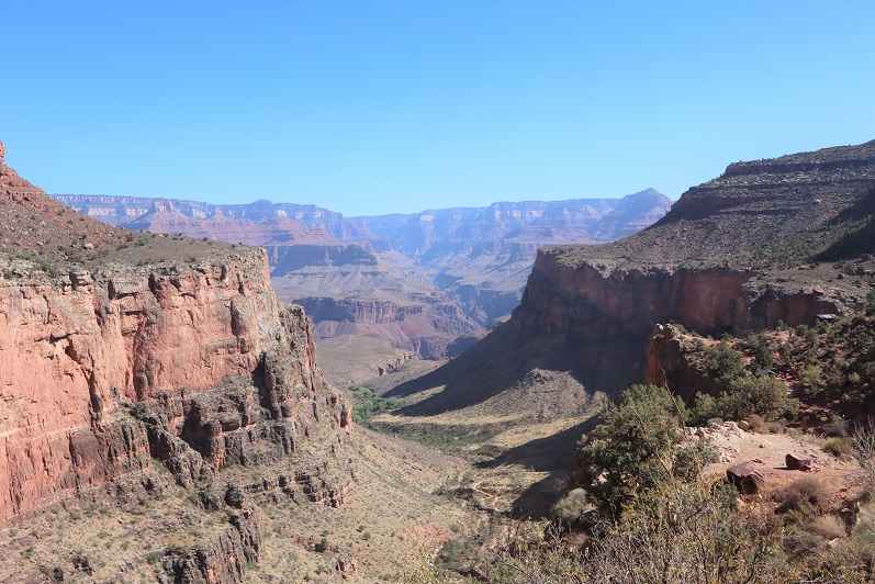This ended up adding a few miles to my trip, but since this was a long hike in the first place I didn’t really mind.  I crossed the bridge, went through a tunnel, and then followed the River Trail to the Bright Angel Trail. I was glad I was doing this in daylight so I could enjoy the view of the river.