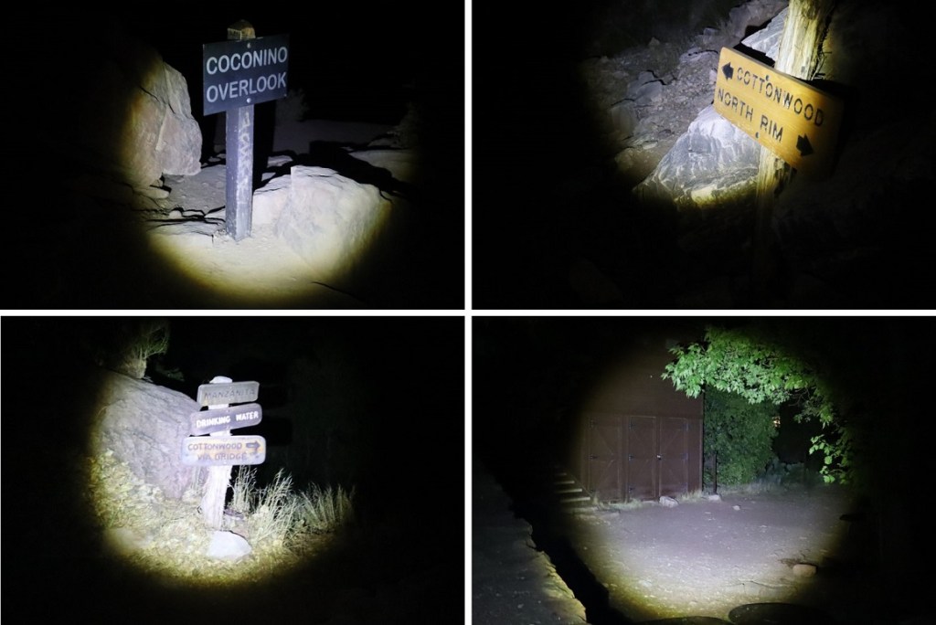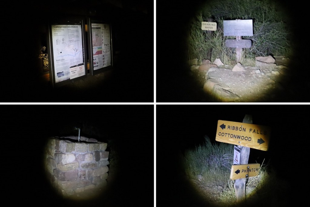 I made it an early night and was on the trail by 1am. I’d initially wanted to wear a hat that said “Happy Birthday” on it, but it was way too cold for that:  25 degrees at the North Kaibab Trailhead at 1am.  I put on my jacket and gloves and was off.  This trail is extremely easy to follow, even in the dark. Here are a few pictures from along the trail in the dark.
