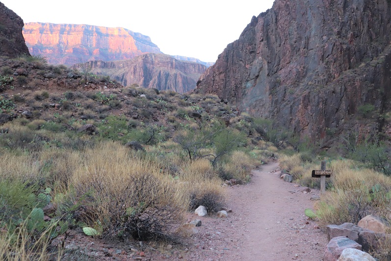 Here’s what the trailhead looks like.  There’s a lot of signage and free water. All of the water spigots were turned on, so water wasn’t a problem on this trail.  However, since this is the Grand Canyon I brought extra water anyway.