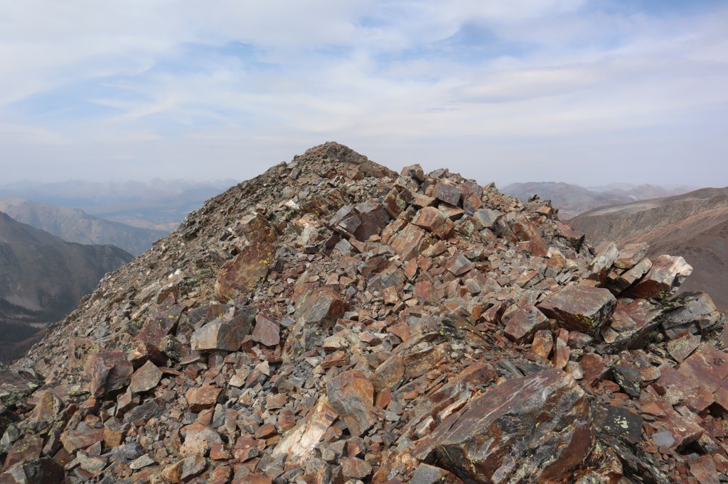 I summited Peak Three at 12:30pm. I had a hard time getting my camera to cooperate, so we get a unique summit photo this time