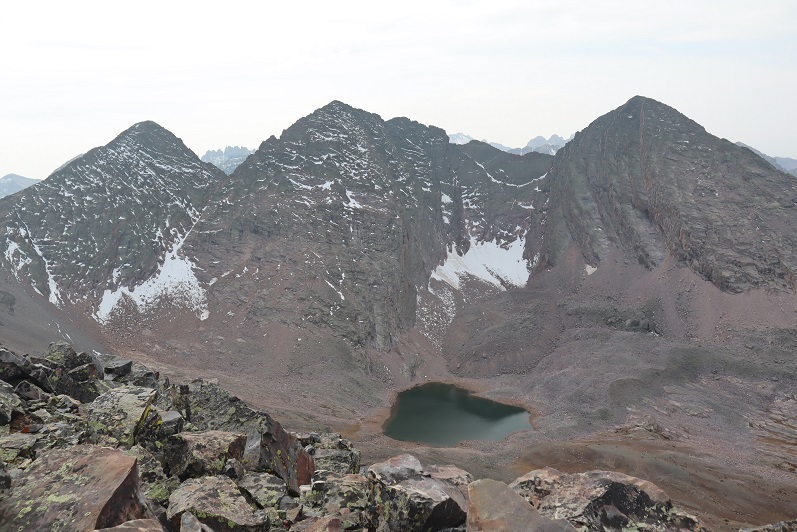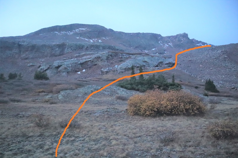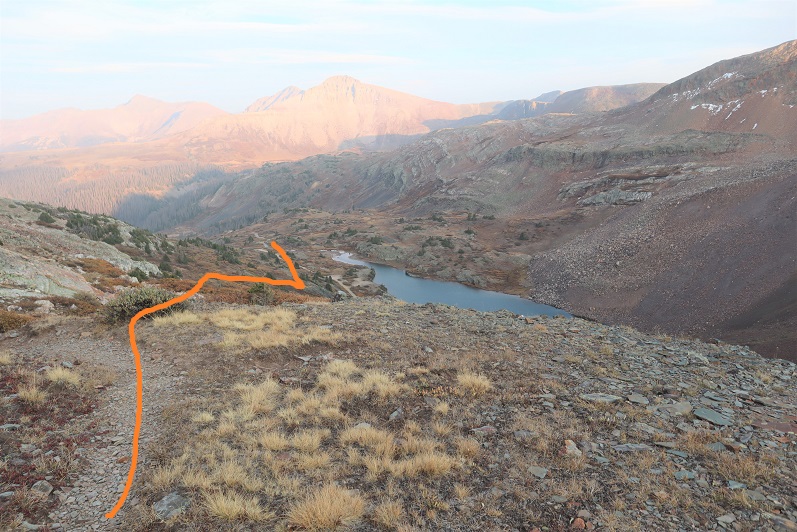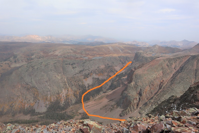 I looked to the northeast, and could see my intended exit route. I planned to hike back down to the basin and catch up with the Colorado Trail.