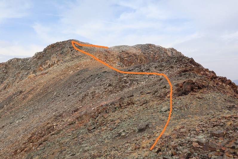 This was a ridge hike, with no large obstacles to summiting. I dipped down once or twice to the right when needed, but this is all class 2