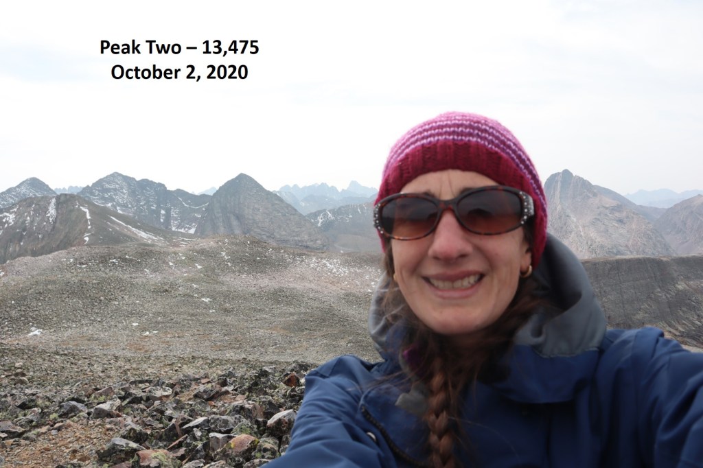 I summited Peak Two at 1:50pm. Something was wrong with my camera. I couldn’t set up the timer for a photo, so I just took a selfie, which ended up being unfocused. I also couldn’t use any of the buttons, the visual playback didn’t work, and I wasn’t entirely sure the camera was taking a photo (even though I heard a click). Oh well, I guess it’s time for a new camera. I’ve never liked this one anyway….