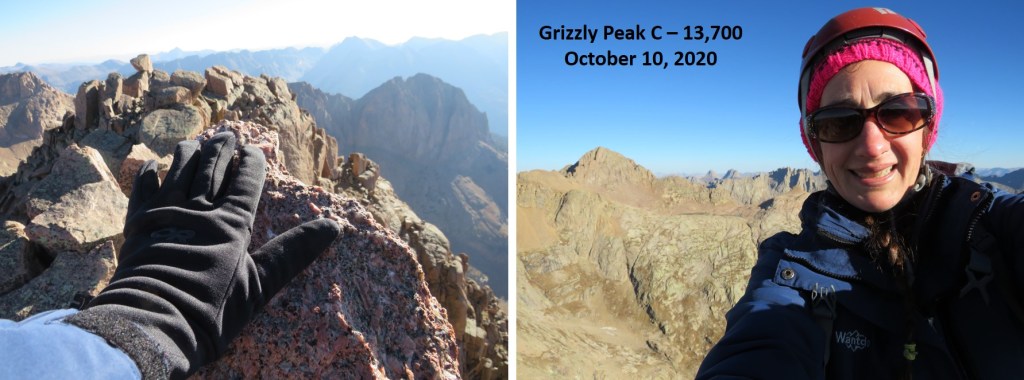 It was a beautiful day! The predicted winds never materialized, so I stayed a little longer on the summit than usual. Then I headed back down the gully and over the ridge
