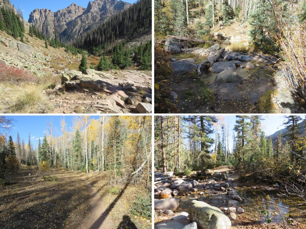 I continued hiking along the class 1 trail, but the stream crossing was causing me to have a Raynaud’s attack. Surprisingly, it was in my hands and not my feet. I kept pumping my fingers and balling my hands into fists, willing them to warm up and stop burning (yes, I realize that was a juxtaposition). My fingers burned for another 2 hours. I should have stopped and warmed up some water to revive them, but instead I continued hiking until I came to the Vallecito/Johnson Creek Junction. I made it to the junction after hiking for 10.3 miles, and continued left (west) towards Johnson Creek