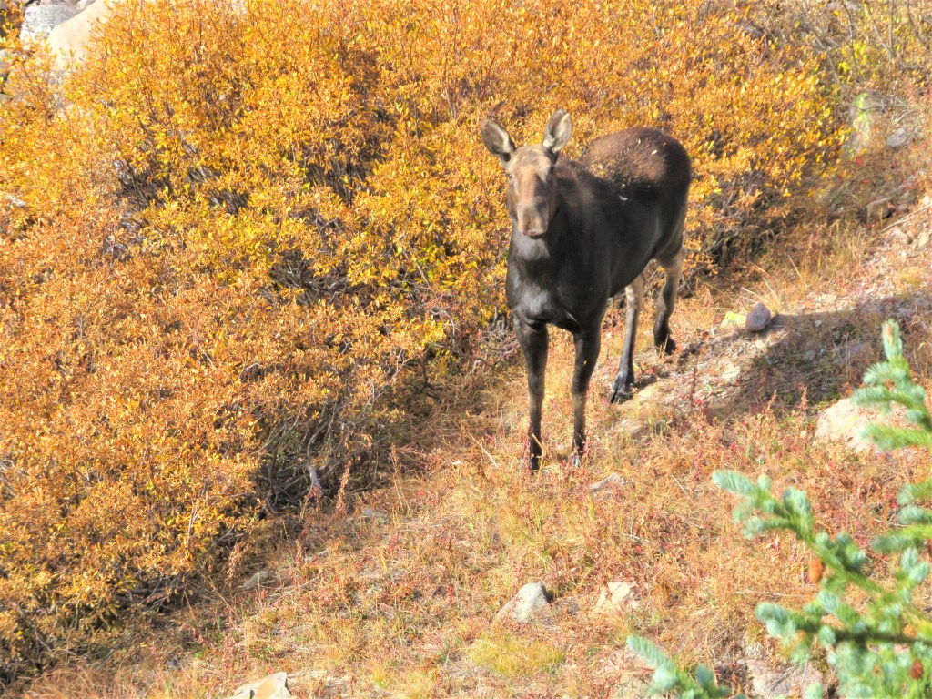Just as I entered the Vallecito Basin I came across a moose. She was just as surprised to see me as I was her. She was the size of a horse, adorable, and reminded me of a puppy dog, but I gave her space. After the initial inquisitive look she gave me she pranced off to the trees and watched me timidly as I hiked away.