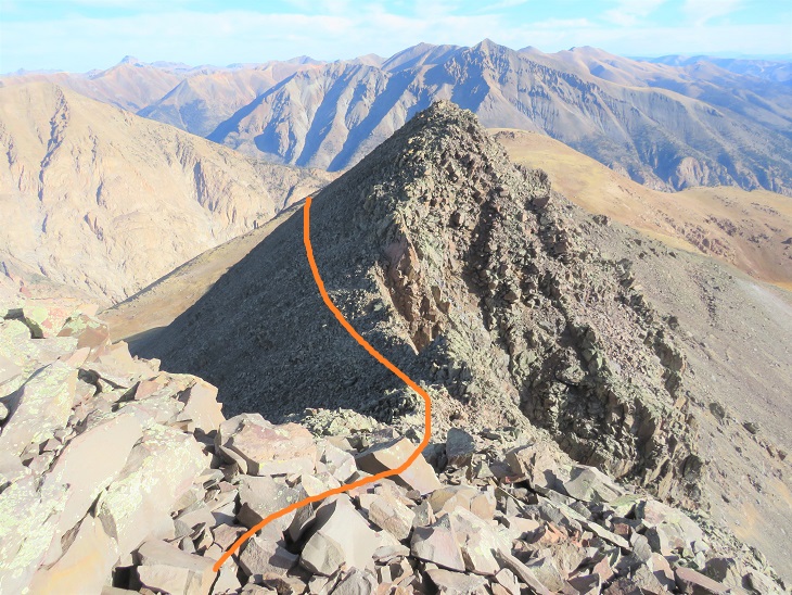 Getting to and staying on the ridge is the best option for this part of the hike. The rock is loose, but at least it can’t fall from above