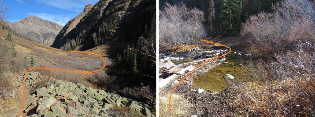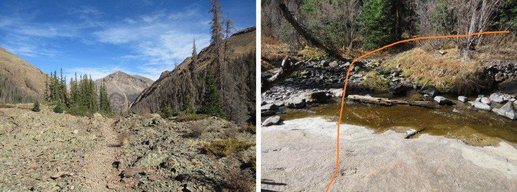 The rock changed to tundra and I turned right and followed the basin east back down to Cataract Gulch trail