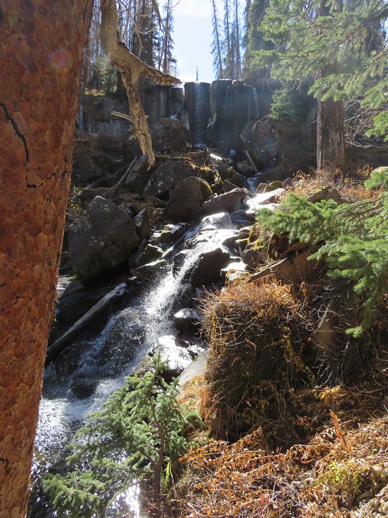At the top of the waterfall area I crossed the creek a few times (cross the large rock slab first, and then a log)