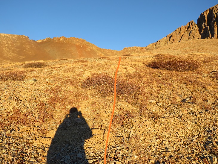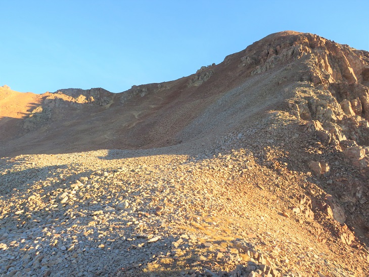I stayed high here, aiming for the ridge.  This was an easy trek on relaxed scree and nicely sloping tundra