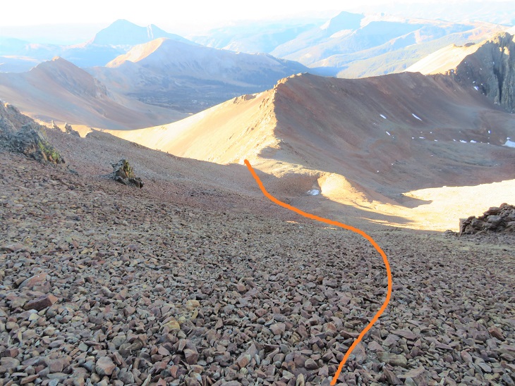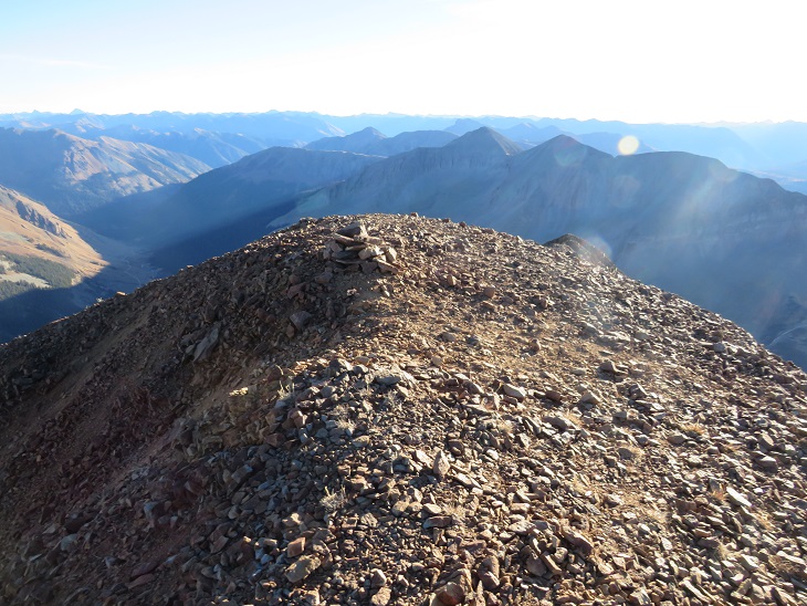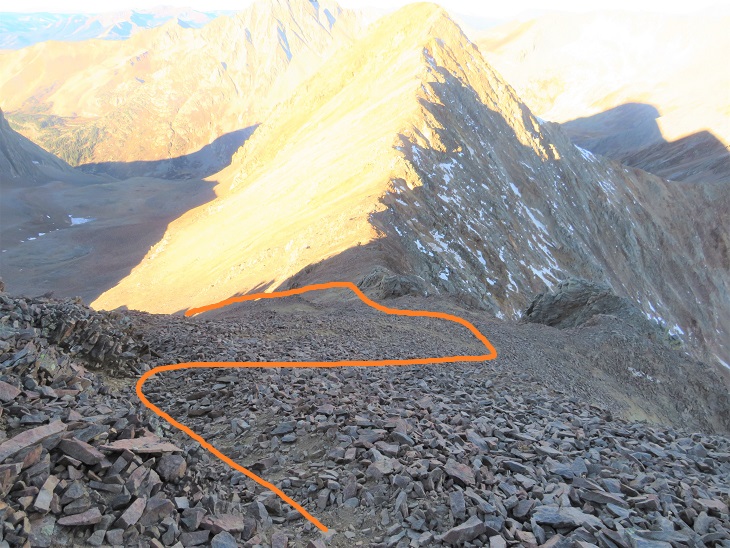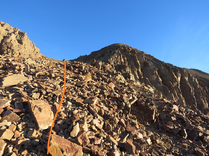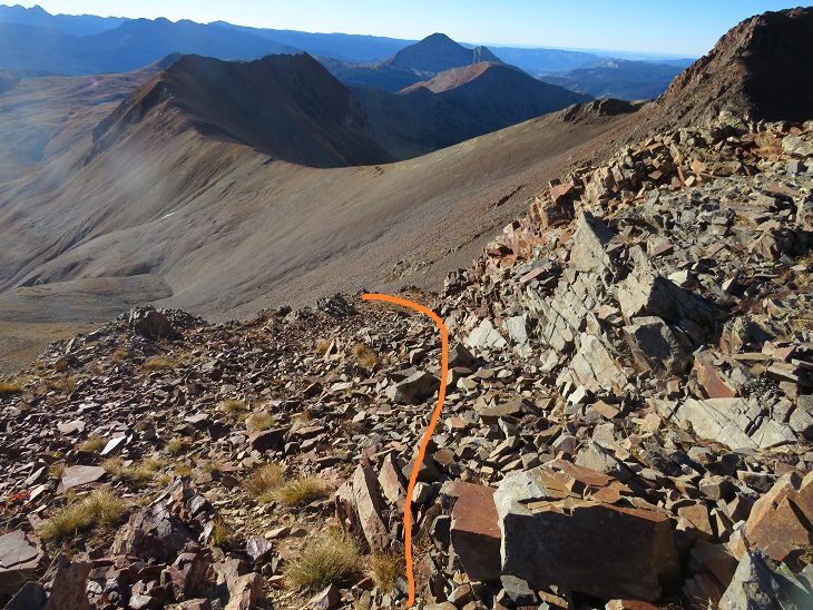 The trail is light but easy to follow. The terrain was a nice class 2 as it followed the ridge to the summit.  It would have been much more enjoyable without the wind.