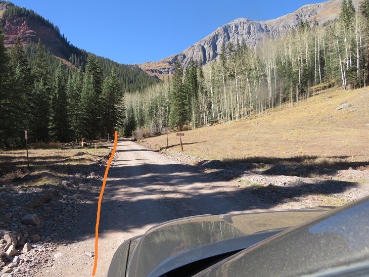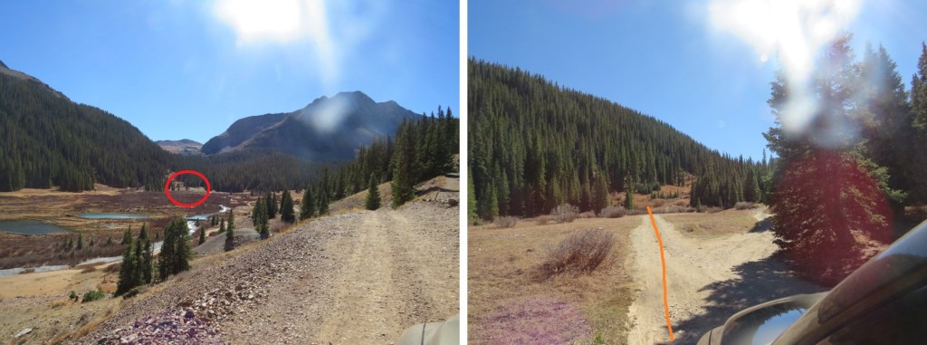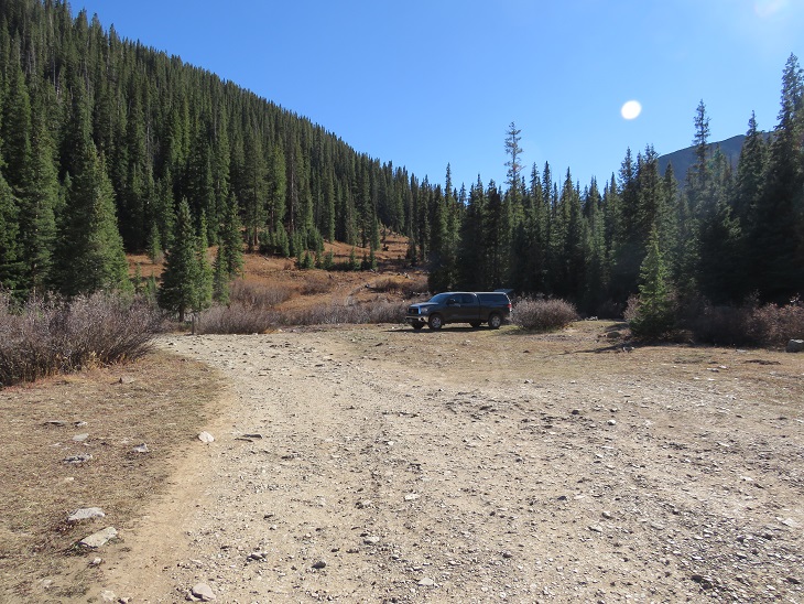 After summiting Pilot Knob I made it back to the Ice Lakes Basin trailhead and took 585 for 2.5 miles down an easy 4WD dirt road, past the Bandora Mine, until it ended at the south end of the basin.  Parking at the Ice Lakes Basin Trailhead adds 5 miles total to this hike.