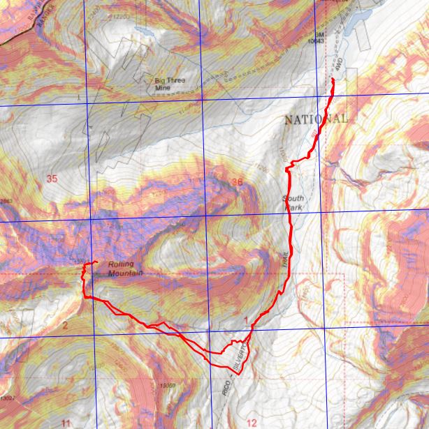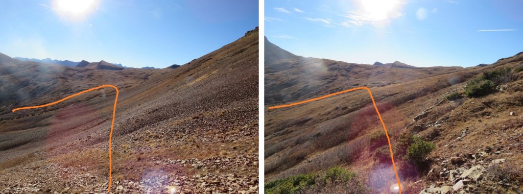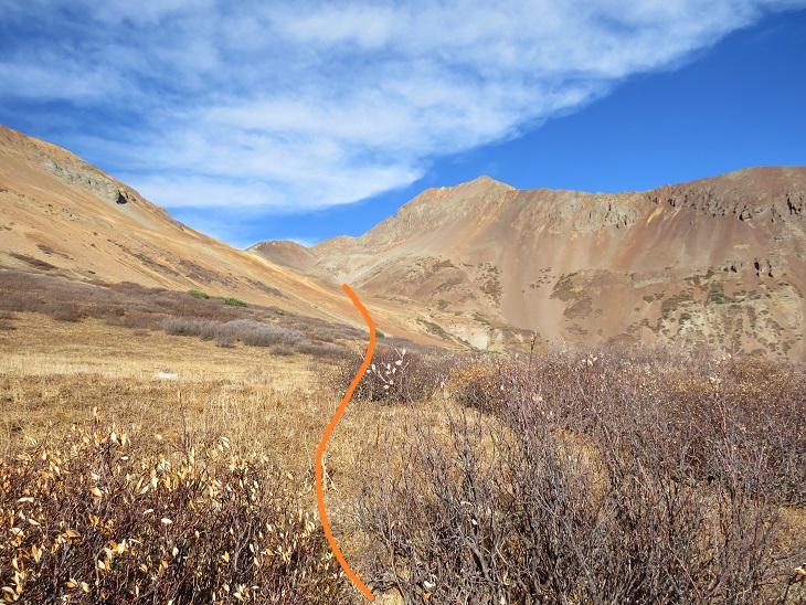 And east towards the Rico-Silverton trail, staying high to avoid the willows