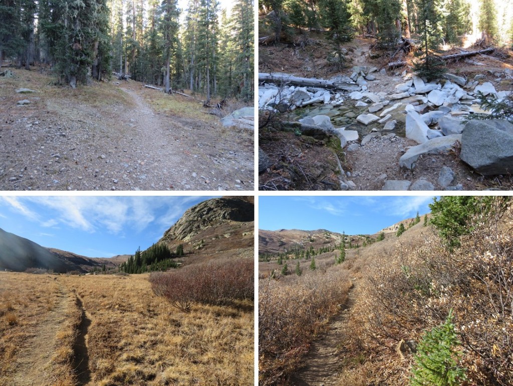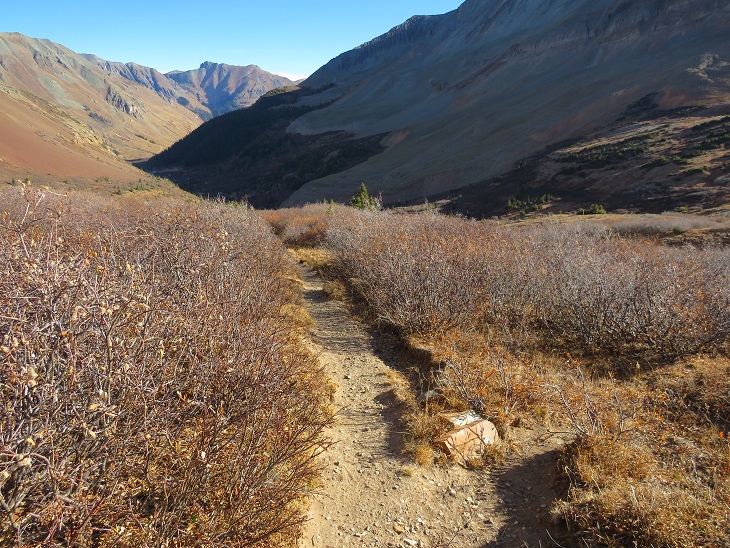I was up and on the trail at 6am.  The trail starts at the south end of the basin, initially crossing a small stream, then following Rico-Silverton Trail 507.