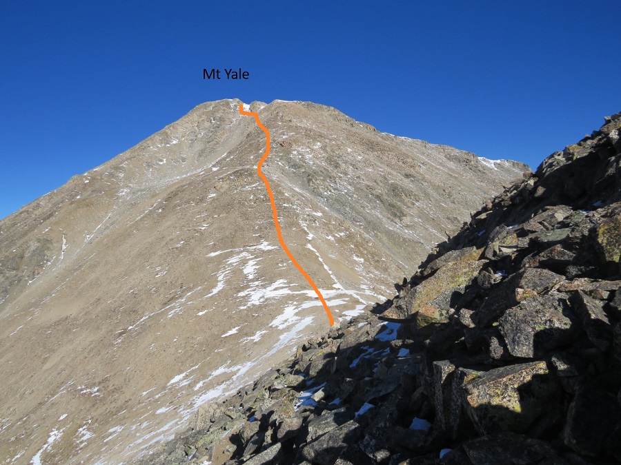 The summit of Mt Yale is the highest point at the southeastern part of the ridge.