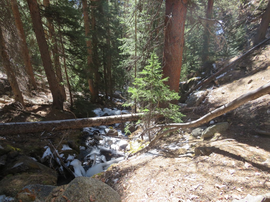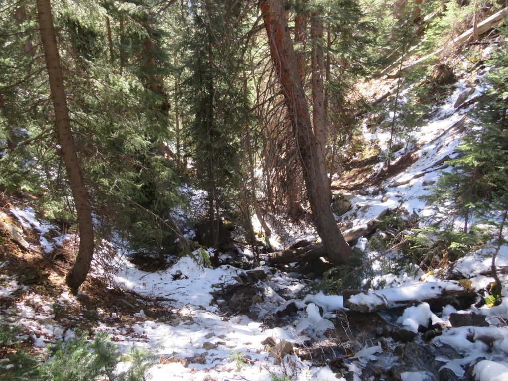 Once at treeline I kept aiming for Denny Gulch, following a drainage of sorts southwest