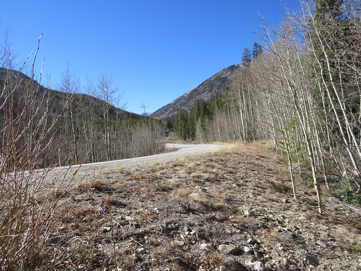 I could have followed Denny Gulch all the way to the road, but ended up coming across a well-defined game trail that headed northwest. I took that for a short distance, and it turned into the remnants of an old mining road that looked like it hadn’t been used in half a century or so.