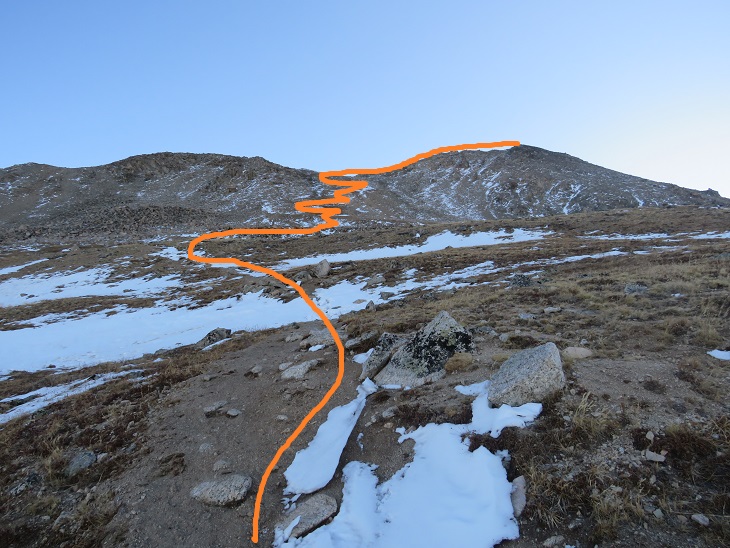 Once at treeline there was still snow, but it was easy to follow the trail to the saddle, and then southeast to the summit of Mt Yale.