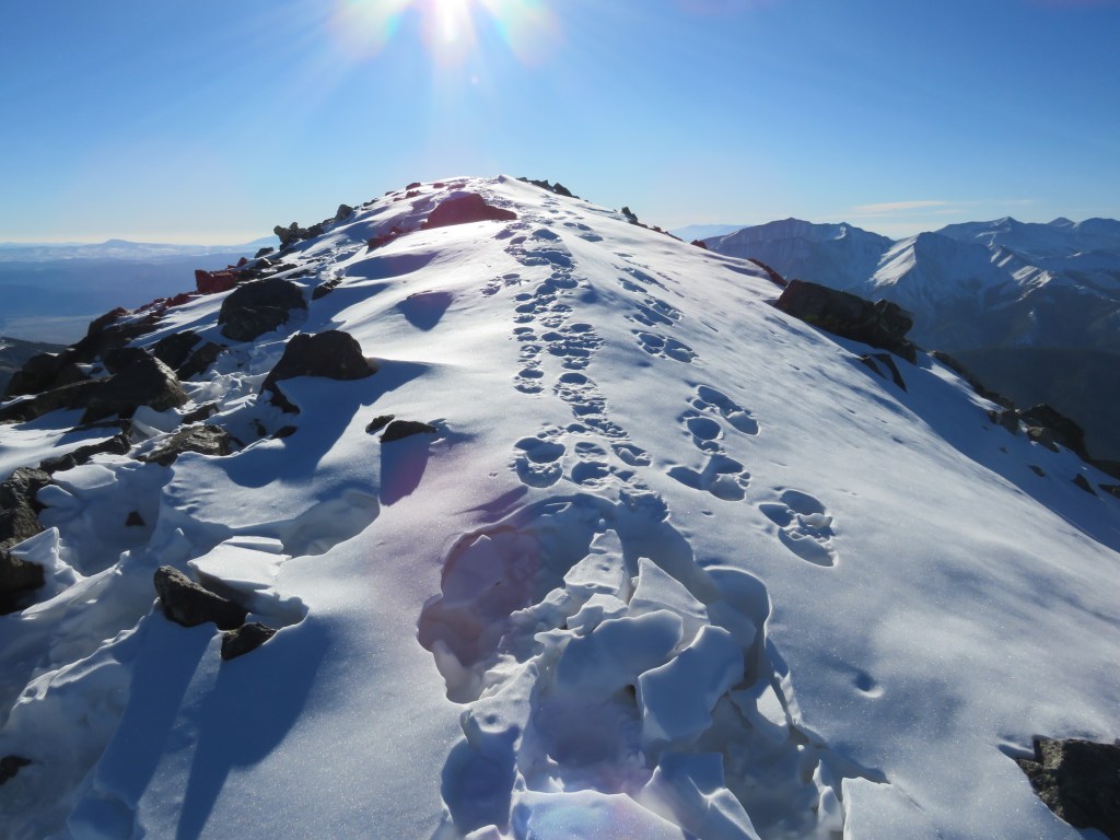 Mt Yale was where the tracks in the snow stopped, but Mt Yale wasn’t my primary objective today so I didn’t stay long on the summit. Instead I continued heading southeast, making my own tracks, postholing at times.