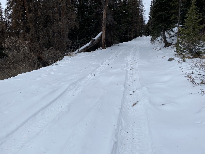 This road goes all the way to Tincup Pass, and by the looks of it, a 4WD vehicle had driven the entire way recently.  High five to this individual, as they have some serious chutzpah. I was glad I’d parked below however, as I wasn’t sure how my truck would have done on the ice.