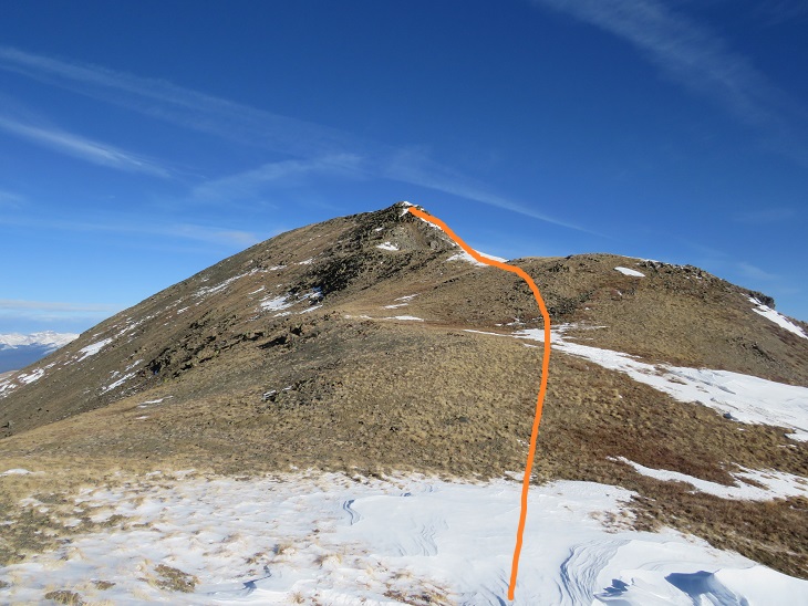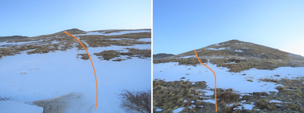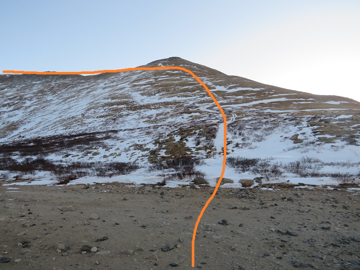 Once on the ridge I followed it to the summit. This is also where the wind picked up. I put on my balaclava and followed the ridge. The ridge is long, and there’s a false summit here.
