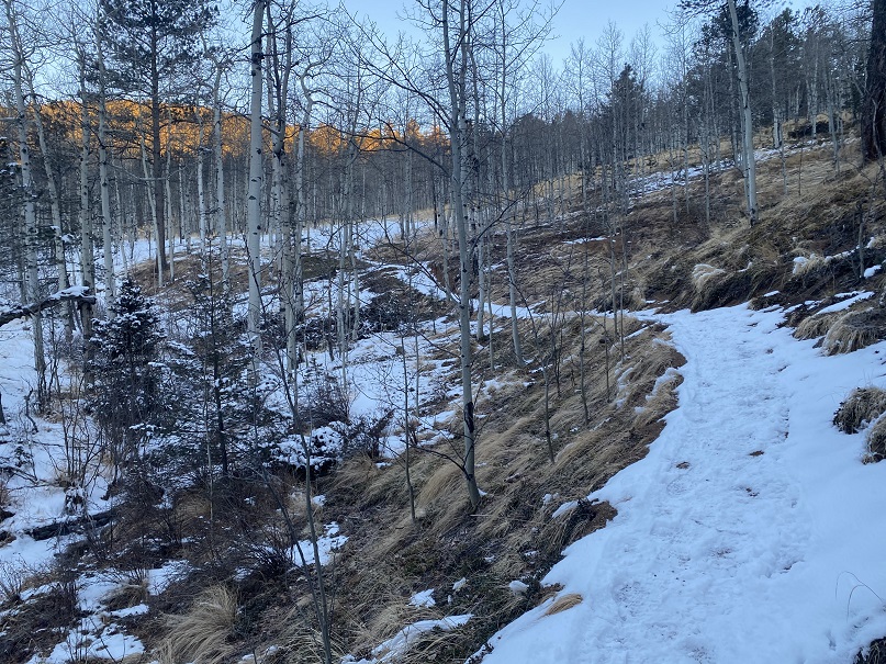 After hiking for 2.5 miles the trail starts to head north. This is one of my favorite parts of the hike, as it goes through an aspen grove