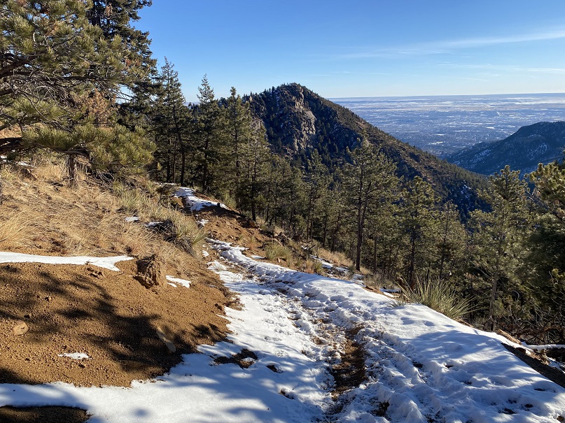 Initially, I’d planned on hiking Mt Massive this morning, but after seeing the predicted wind speeds I turned around and slept another 3 hours before heading out to North Cheyenne Canyon. I was the only one in the parking lot when I arrived, so I got to choose my space. I parked right in the middle, since I’d be making this hike a loop.