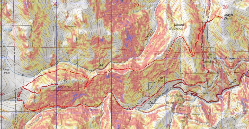 Here I came to another junction with High Drive. I crossed high drive and headed east up the west side of Mays Peak