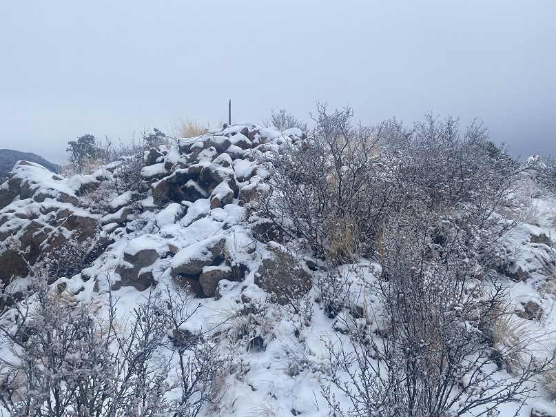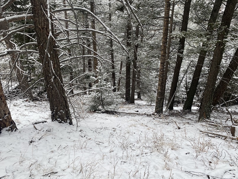 This ridge goes up and down and up and down. The scrub oak is particularly unsettling, but on a positive note it was mostly dead and broke away when I hiked past. Here’s the summit of Mt Pittsburg