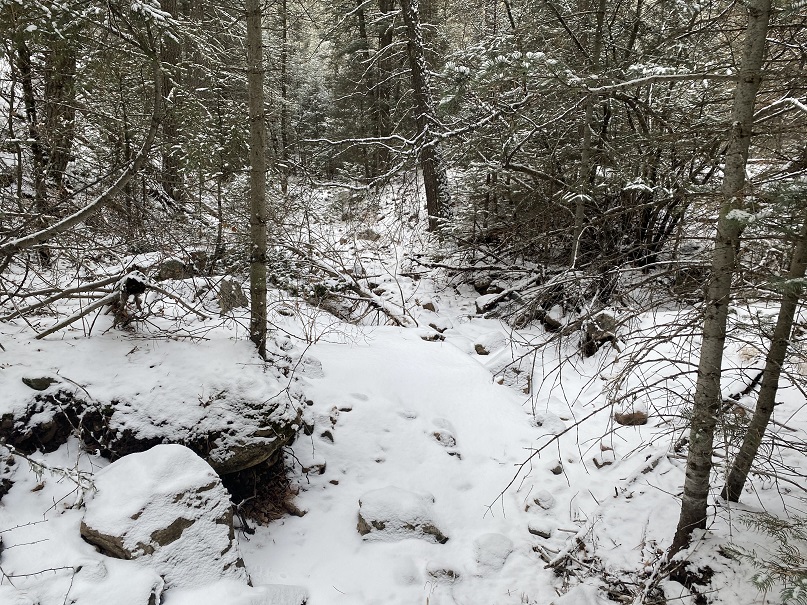 From the ridge, here’s looking at the quarry office. I would like to note I had a red bandana and was quite visible due to the fresh snow. No one tried to tell me I wasn’t supposed to be there or follow my obvious tracks in the snow to talk with me about my intentions. I’m sure they have bullhorns at facilities like this, right? Surely I was within range of bullhorn communication if I was doing something wrong. But no, I was simply enjoying my hike, and at this time thought nothing amiss.