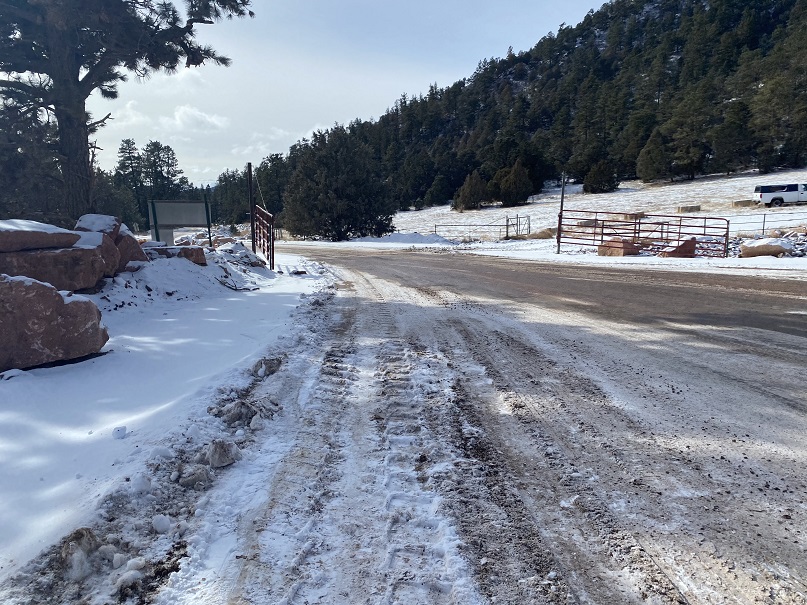 I drove slowly the last 2 miles to where I parked, following a large, industrial truck. The roads were icy from the overnight storm, so I didn’t mind going slow. I kept looking for a good place to park, and maybe it was the recent snow, but there just wasn’t one along the entire drive in. Finally, just before reaching the quarry, I saw a place I could park. I pulled over, backing up a few times to make a nice parking space in the snow, and looked around. I didn’t see any ‘no parking’ or ‘no trespassing’ signs, so I sat there for 15 minutes, putting on my gear. Here’s where I parked, just in front of an open gate, near a mailbox