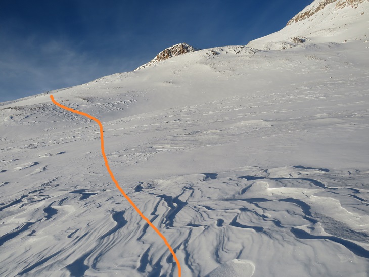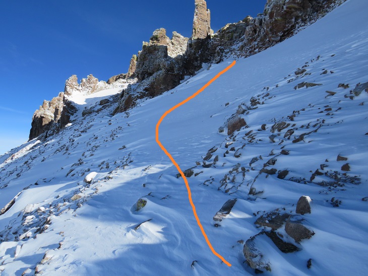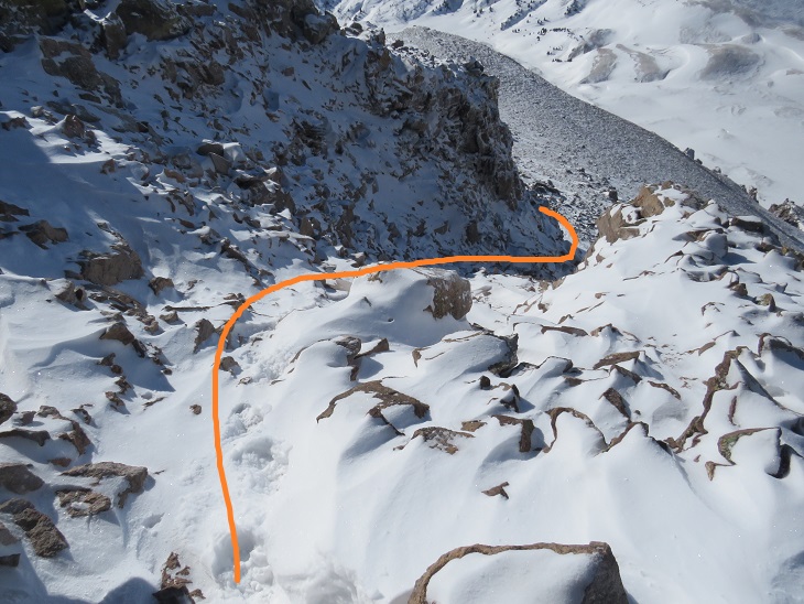 Once at the willows I had to gain this small ridge. This was easier to do in the morning than in the afternoon (pics of my glissade route later). Here’s my path