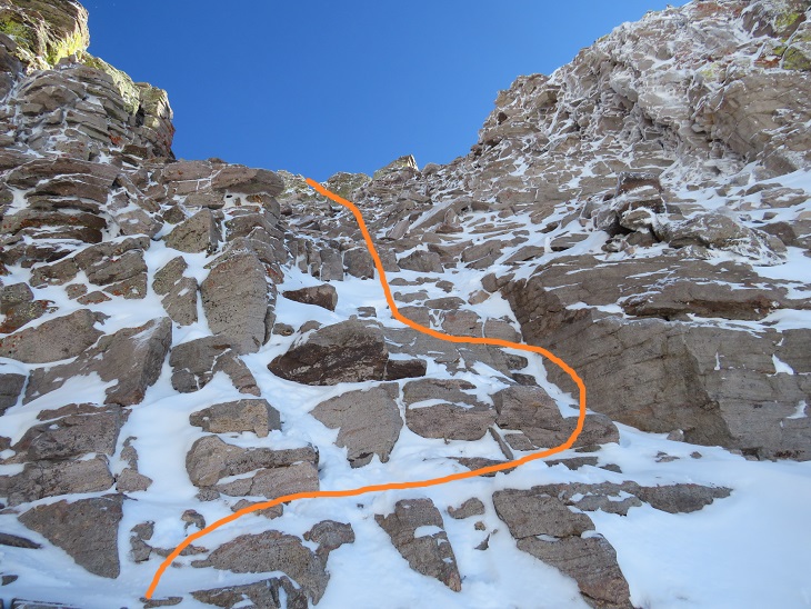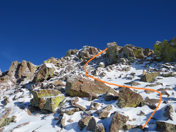 I gained the ridge again and traversed a short distance along the backside, looking for a short gully to climb