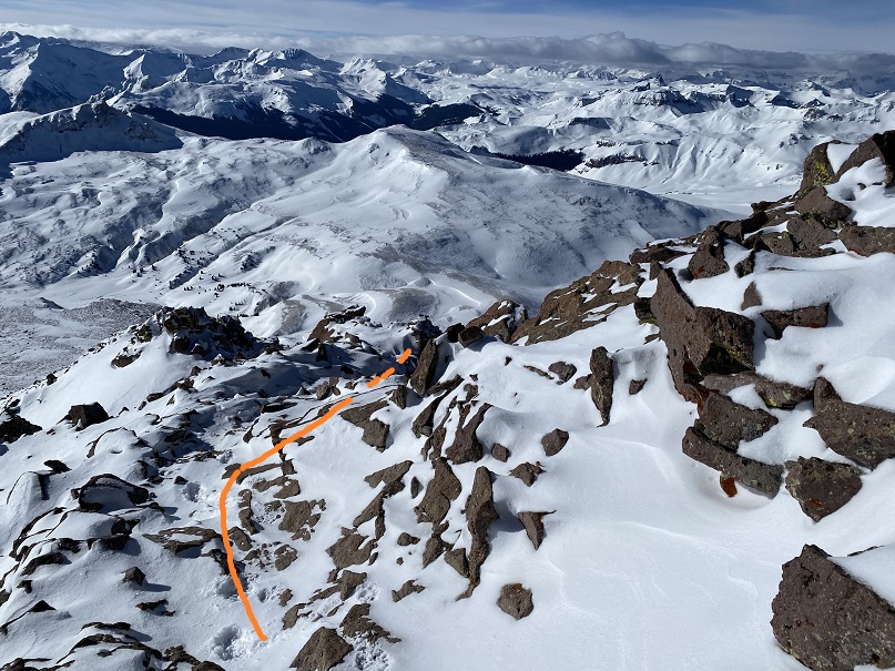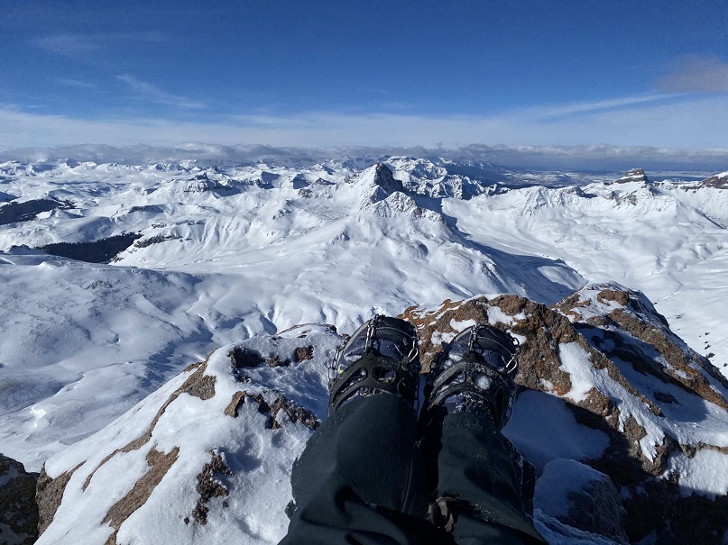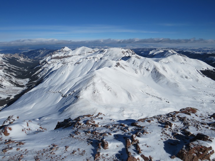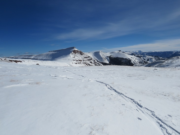 I walked back and forth all along the summit to make sure I hit the actual summit. The summit is towards the middle… the pictures were better towards the west though. Also, usually when there’s a lot of snow I can see herds of animals, or at least their tracks in the basins below or on the ridges. No tracks today, so they’re all probably below treeline now.
