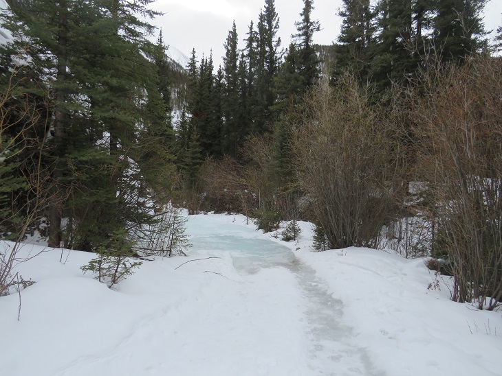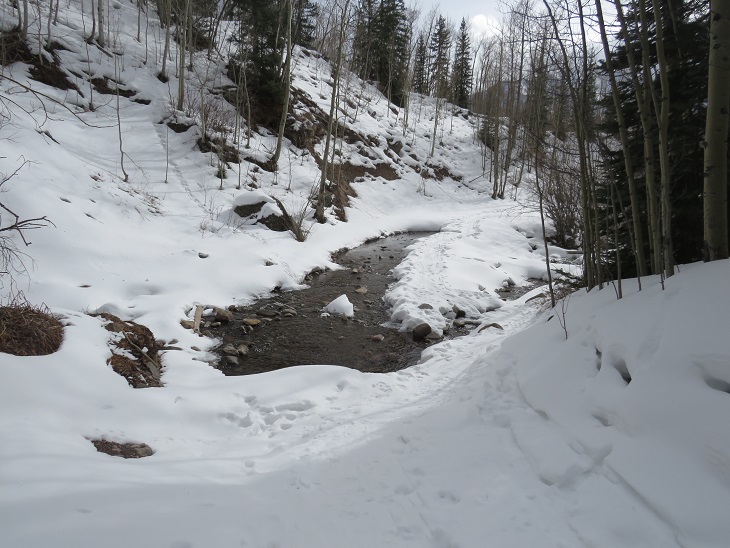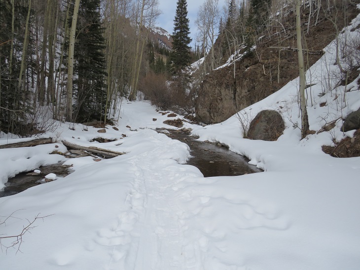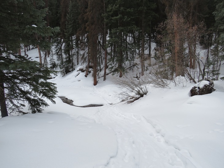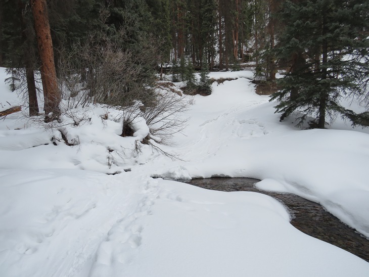 And here’s a look at the stream crossings. There were snow bridges over the water, and you could hear water flowing under the snow.