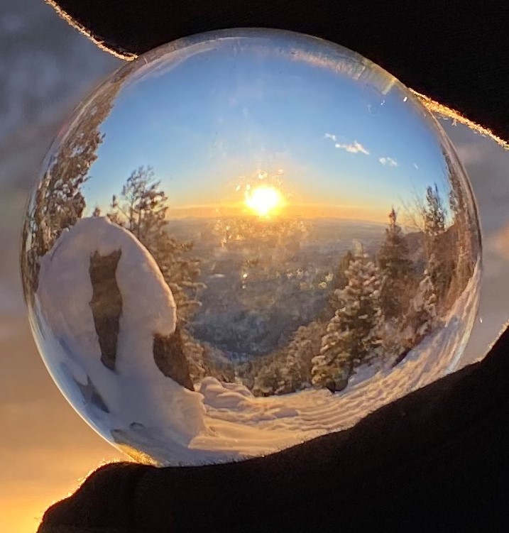 Then I continued on to Rocky Mountain.  I broke trail here, and got another lensball photo of Pikes Peak from the summit
