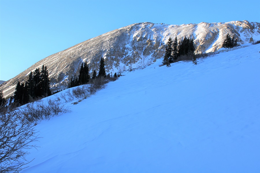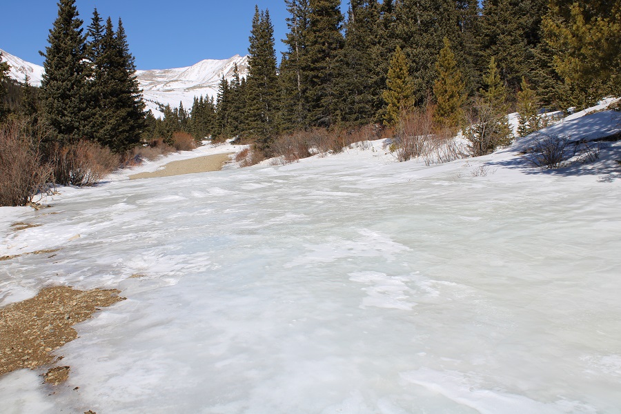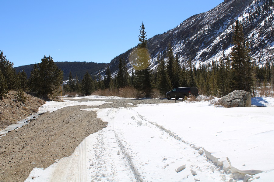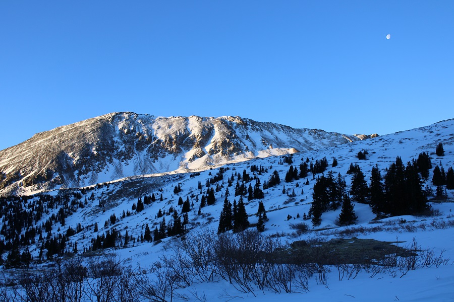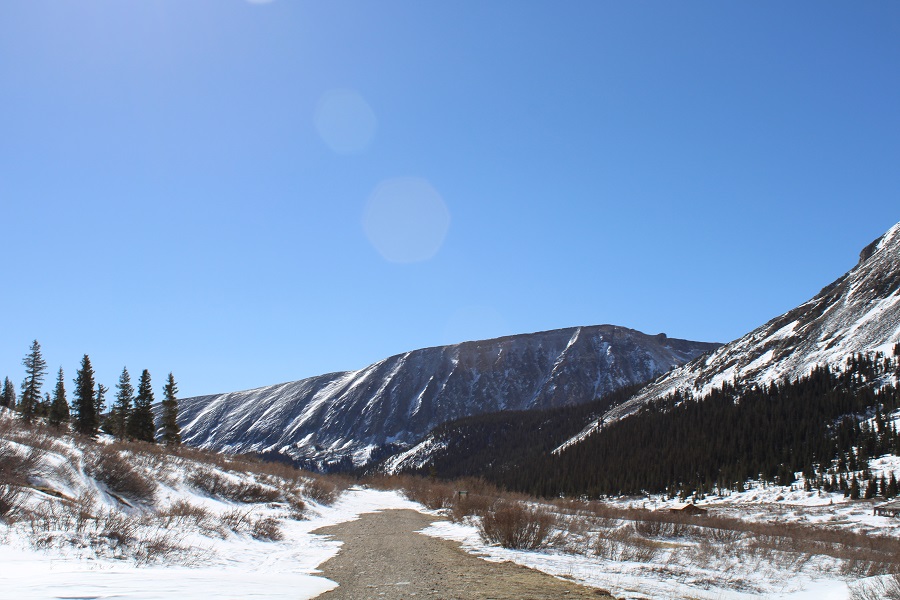 I was looking for another quick summit this week, and was halfway to the trailhead before I remembered the road to Mosquito pass would most likely be snowed in, adding about 5 miles to the hike.  Oh well, I should still be able to make it an early day.  I made it to where the road for Mosquito Pass and 12 meet and due to previous experience with this road in winter decided to park at this junction.  I could have driven about a mile up Mosquito Pass road, but eventually the drifts would have made it necessary to find a place to park.  By parking below I’d be getting in some extra mileage (if not much elevation gain).