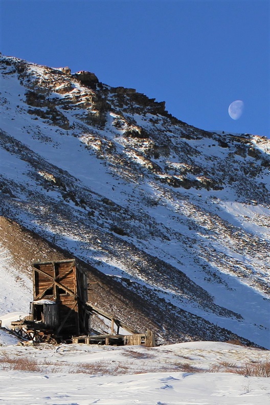 The moon was just going behind the ridge as I reached the mine