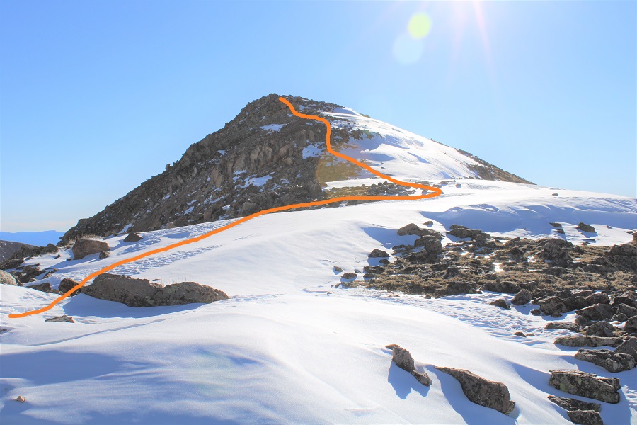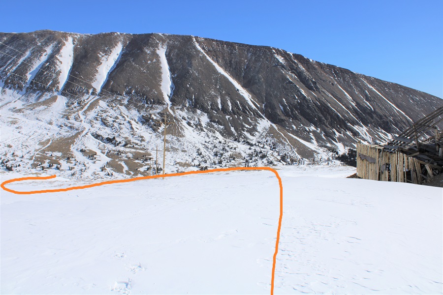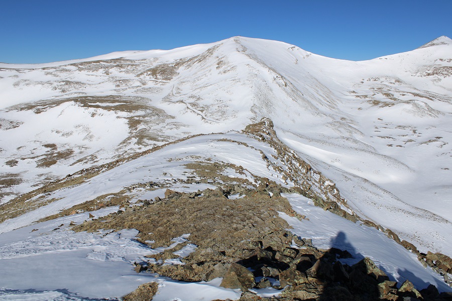 I made it to the London/Mosquito saddle and took off my snowshoes, turned left, and followed London’s ridge southeast.