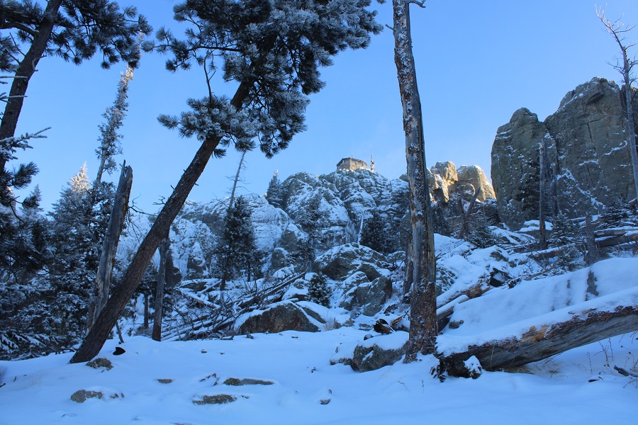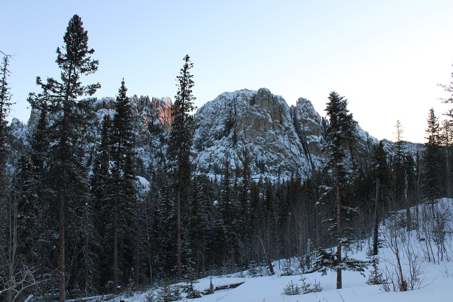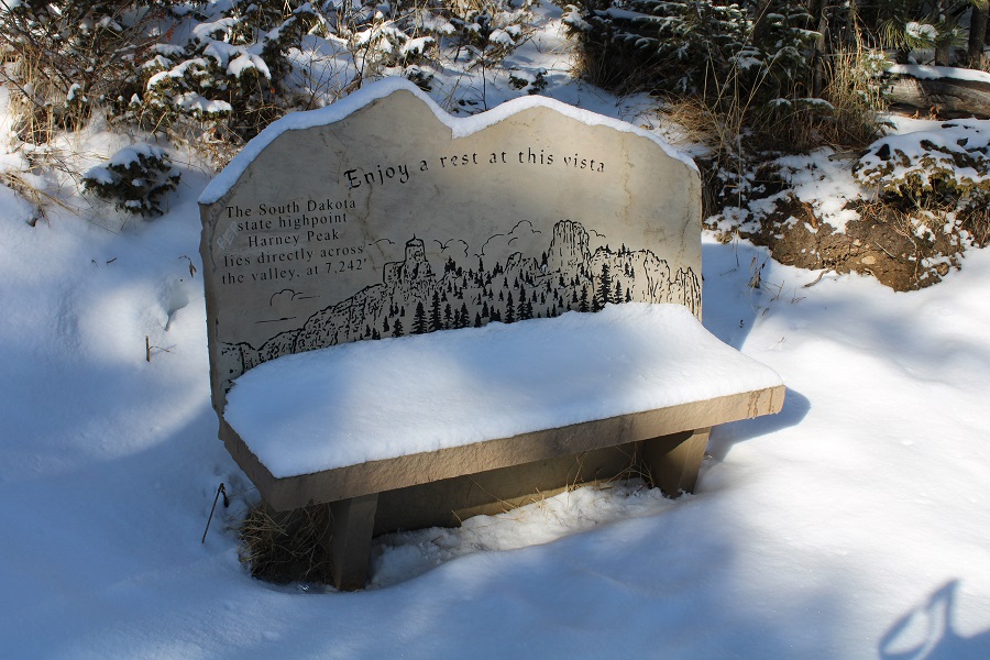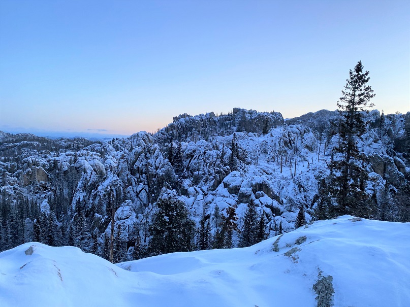 The drive from North Dakota got easier as the miles went on. It started out with lots of snow, but by the time I made it to Custer State Park the snow had ceased. Once in the Black Hills I stopped at a Subway to get a sandwich, and a Starbucks to get my mug. I was surprised at how many establishments in South Dakota were closed. I’m hoping they were closed because it’s off season, and not due to Covid. I stopped at the Ranger Station to pay the entrance fee, and was surprised to find it was $20 (that seems kind of steep for a day visit).