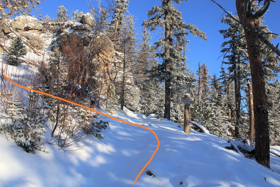 Note, go LEFT at this sign, as going straight won’t take you to the summit