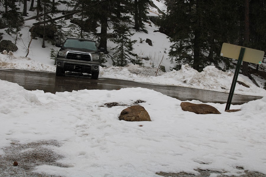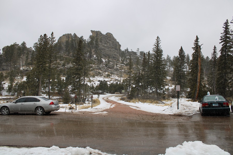 I had wanted to ask if it was ok to sleep in my vehicle overnight, but there was no one at the Ranger Station. There was an information pamphlet, and I scoured it, looking for information on camping, or if I could stay overnight and boondock. It said curfew was 10pm-6am (strictly enforced) but other than that, no rules on sleeping in my truck. I paid the $20, which gave me entrance to the park for 1-7 days, and drove to the Sylvan Lake picnic area. I drove around looking for a spot, only to find the parking lot almost full. The dirt lot was inaccessible due to mud, and there seemed to be an awful lot of people walking around.