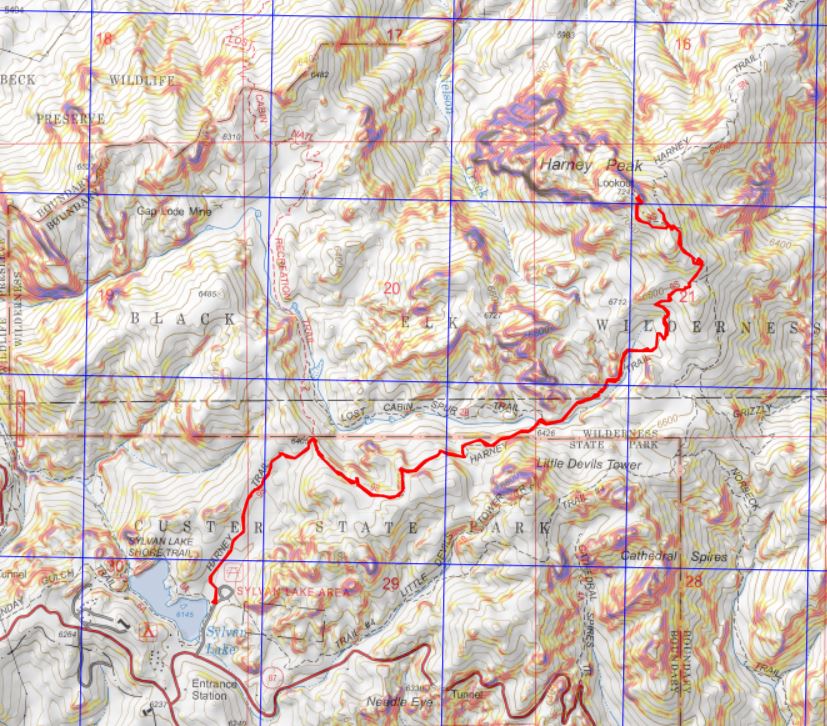 The trail was very clearly marked, just be sure to stay on the Elk Peak Trail, Harney Trail, and Trail #9.