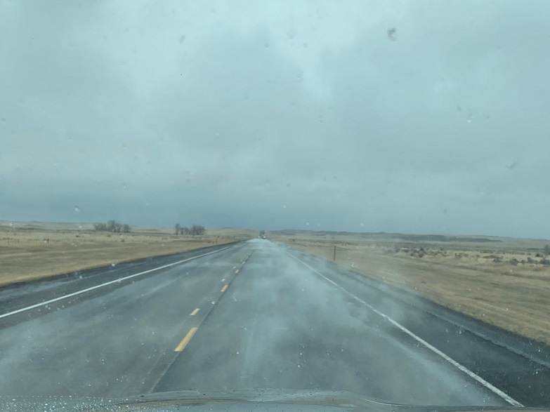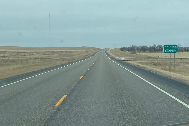 Solo now, I left the house at 1am Friday morning, and drove to North Dakota. One thing I noticed was how different each state was in dealing with masks and covid. Southern Wyoming had a mask mandate, but in northern Wyoming no one seemed to care. South Dakota had a mask mandate, but North Dakota did not. I was a little worried at the amount of snow I encountered in Wyoming, but as I headed further north the snow on the ground lessened. I passed through South Dakota, and when I made it to North Dakota I stopped at the state line and took a picture with the sign.