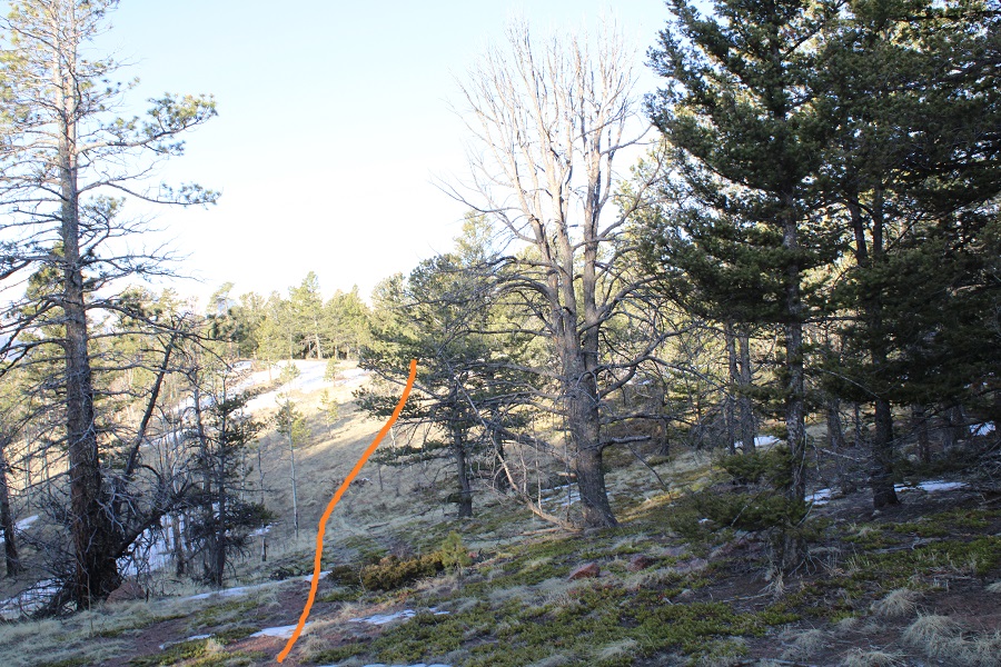 Back down the dip, where there are some very faint tire tracks that have now become social/game trails