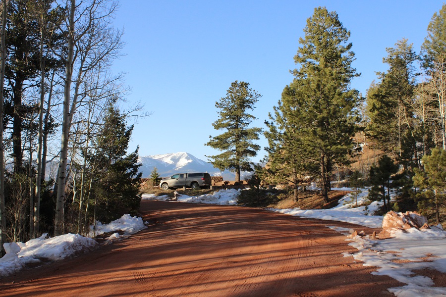 It’s springtime, and in the spring I either travel to state highpoints, or stay local and hit county highpoints. They traditionally open Rampart Range Road every year on April 1, and when I heard the road was open, I decided to take advantage of a beautiful (if windy) day and hit some highpoints. This is the first of 3 El Paso County highpoints I hiked this day.