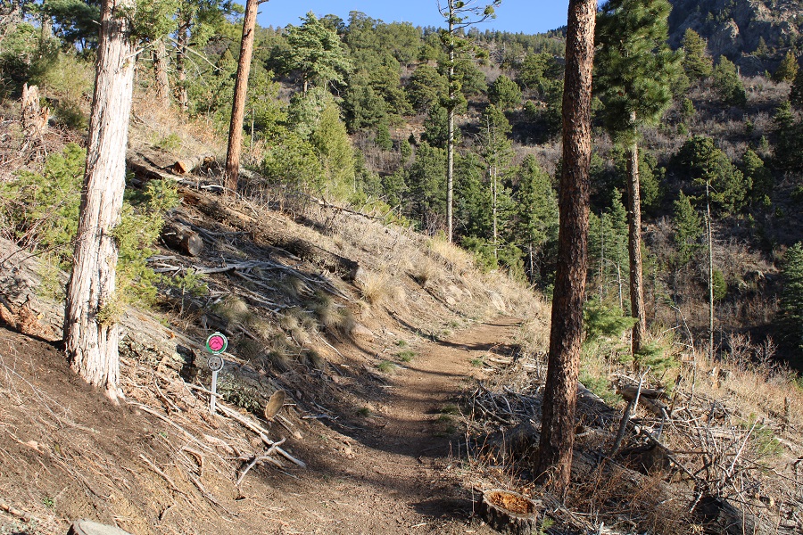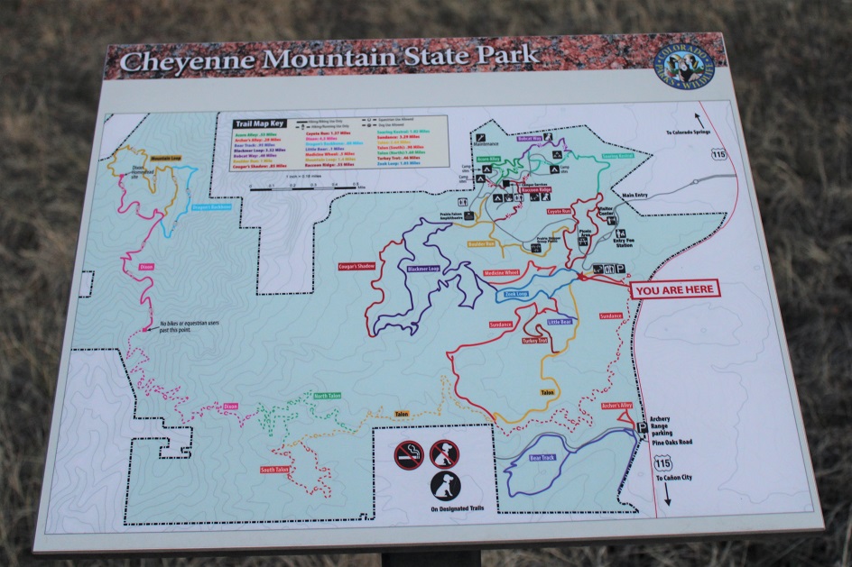 I’ve been asked to write up a trip report on the Dixon Trail from a few different people, but I was waiting until the conditions were right to take this hike. Contrary to popular belief, the Dixon Trail DOES NOT go to they top of Cheyenne Mountain: a reporter erroneously stated it did when the trail first opened, and the falsehood unfortunately stuck. This reporter obviously never hiked the trail before writing their article.