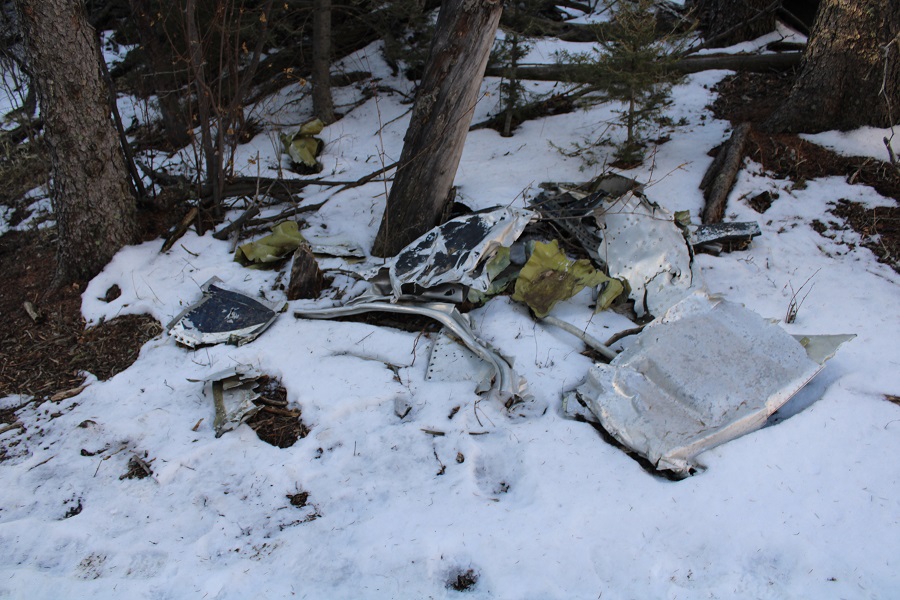 Between markers 3-3.5 miles on the Dixon Trail I came upon pieces left over from plane wreck in 1957