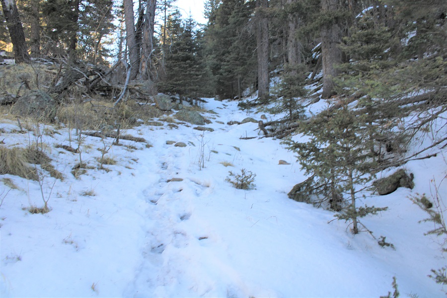 The snow on the trail started picking up, and would be present for the rest of the hike